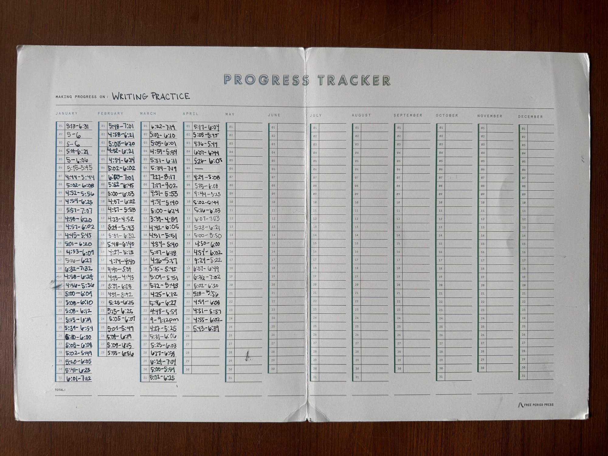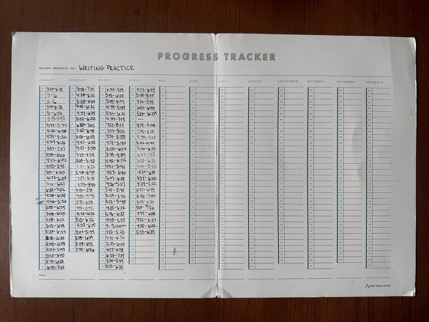 Honestly, I don’t know if I would be writing every day without this very simple analog tool, which has become one of my most treasured possessions because of what it helps me visualize and make tangible. One evening session, one missed day (and it was a day!), but overall a consistent routine during what has otherwise been a wild and crazy year.