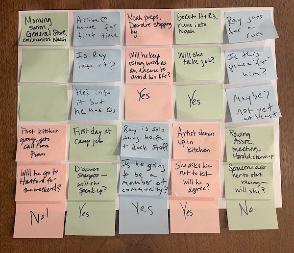 Structuring this project as we have has led me to believe that each chapter needs to have its own small character arc. It’s not enough to have story beats that advance the plot; the characters must be faced with choices and make decisions that reveal who they are and what they believe and what they want. Each chapter must ask a question, and the answers to these questions must be interesting enough — or raise enough new questions — that the reader is willing to hang on a week to see what comes next.